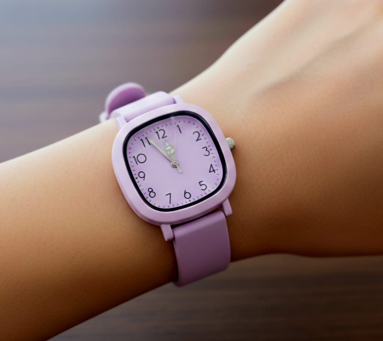 Cor e Acabamento: Possui uma tonalidade suave uniforme em toda a peça, transmitindo uma estética moderna.Formato da Caixa: Diferencia-se pelo formato quadrado com bordas arredondadas, conferindo um visual suave e contemporâneo.Mostrador: É simples e de fácil leitura, com numerais árabes finos e ponteiros prateados com preenchimento branco
